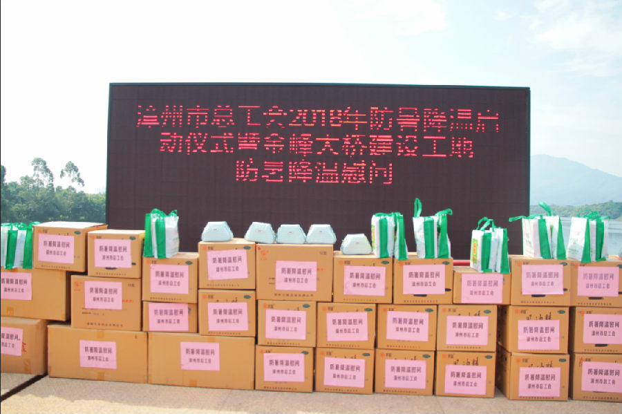 6月29日上午,漳州市总工会在金峰大桥建设施工现场举行2018年防暑降温启动仪式暨金峰大桥建设工地慰问活动。市委常委、秘书长、市总工会主席张琳光及相关部门领导参加了此次慰问,我公司产品永利yl23411集团清凉包被选为此次防暑降温慰问用品,亮相慰问现场。市委领导为坚守在一线的建设者送上永利yl23411集团清凉包,并向他们表示诚挚的慰问和衷心的感谢。