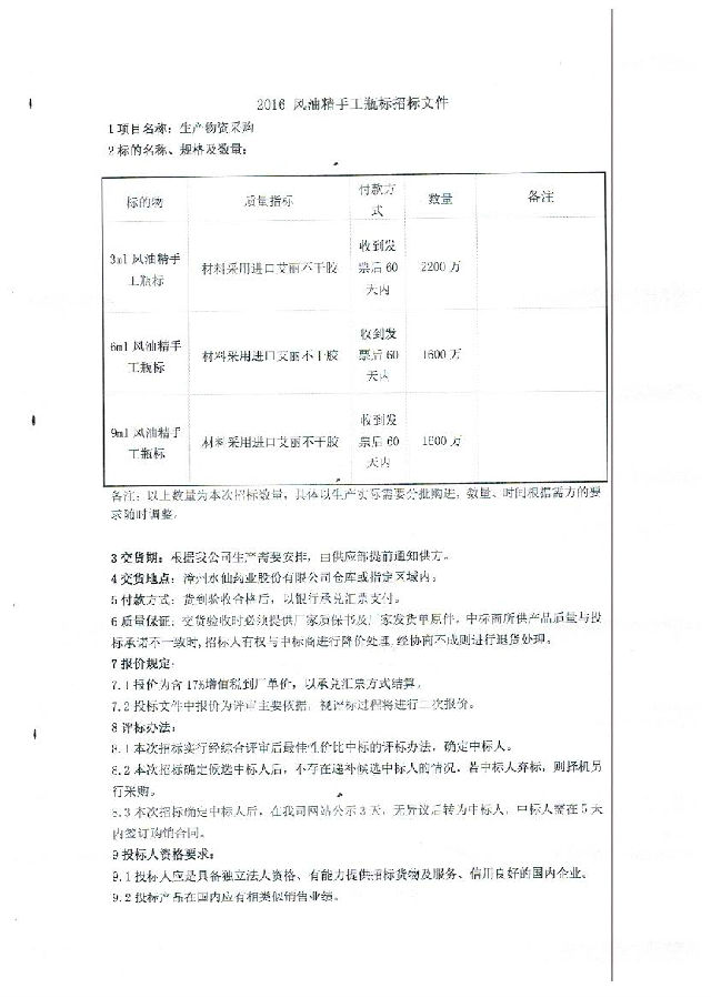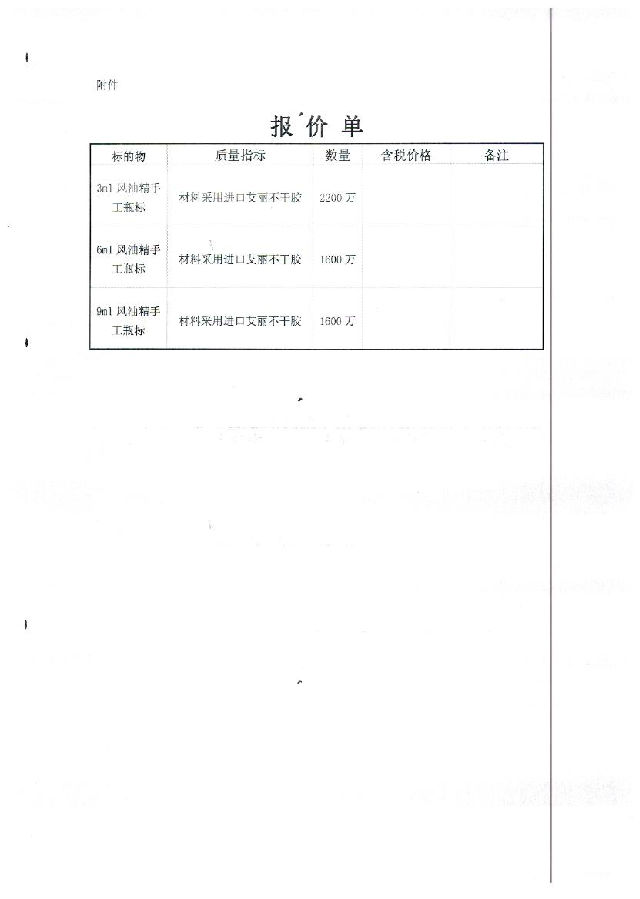 风油精手工瓶标招标文件